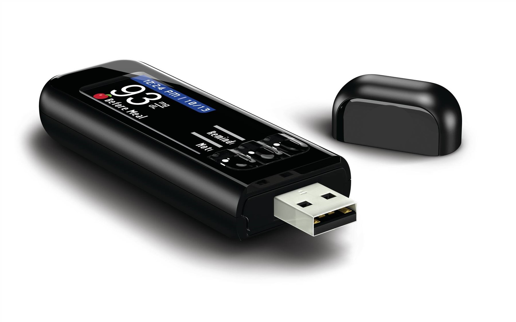Um medidor com design de pen USB que simplifica a informação e ajuda a interpretar resultados.