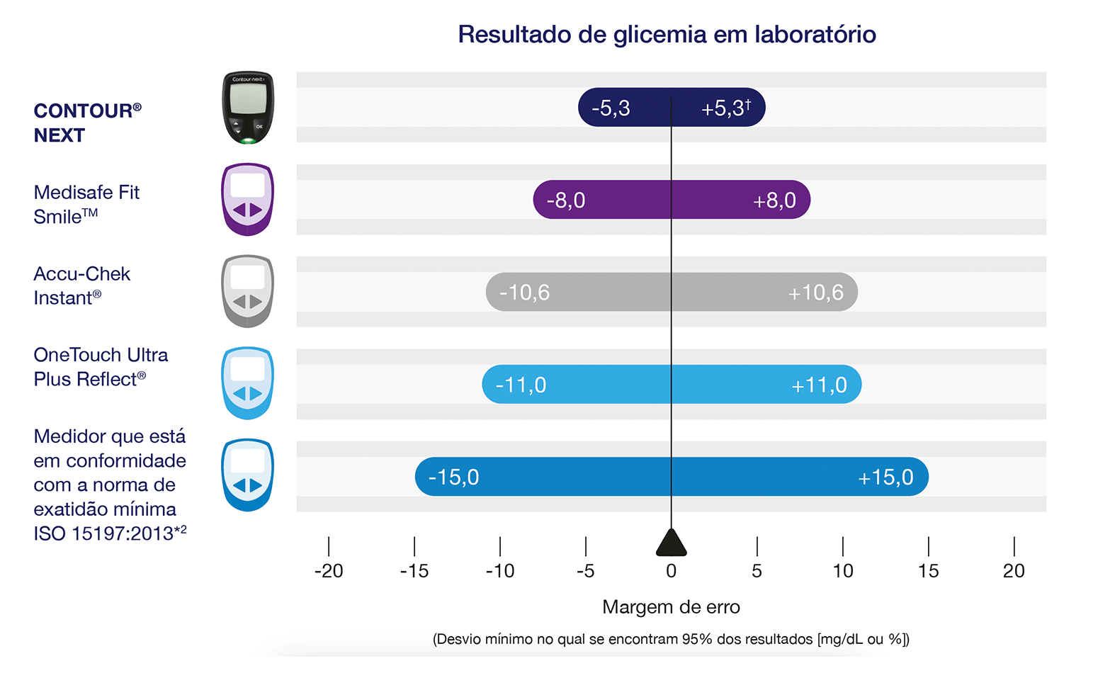 CONTOUR®NEXT é um medidor de glicemia extremamente exato com uma margem de erro de apenas ±5.3%.§,†,3